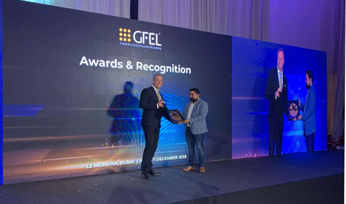 Erik Bolinder receive award at GFEL 2019 on stage in Dubai